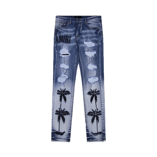 Основные материалы, используемые в коллекциях, — шелк, хлопок, кожа, шерсть и деним, которому отведена главная роль. Одежду из этого материала украшают потертости, принты и слоганы, а также мелкие дырки: их делают, расстреливая вещь мелкой дробью из ружья. Рваные джинсы, фланелевые рубашки, кожаные куртки и майки Amiri носят Tyga и Зейн Малик.
