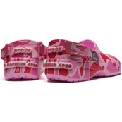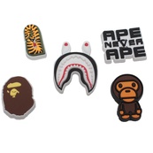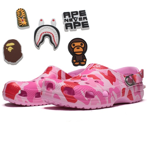 В этой коллекции самая продаваемая модель сандалий-сабо Crocs «Classic Clog» с закругленным носком, охватывающим всю стопу, выполнена в оригинальном камуфляжном узоре «ABC CAMO» от BAPE. В комплект входит 5 Джиббитсов с айдентикой бренда.